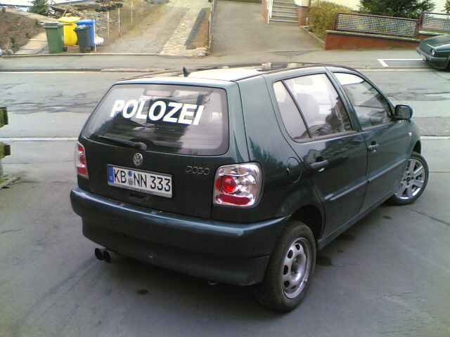 Platz fand das der Tank dann auf der Rücksitzbank meines Polos. Die Hupen habe ich im Schiebedach eingeklemmt.